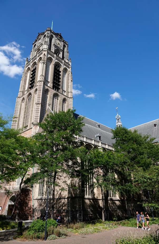 Photo below: the tower of the Grote Kerk or Onze-Lieve-Vrouwekerk of Dordrecht at sunset.